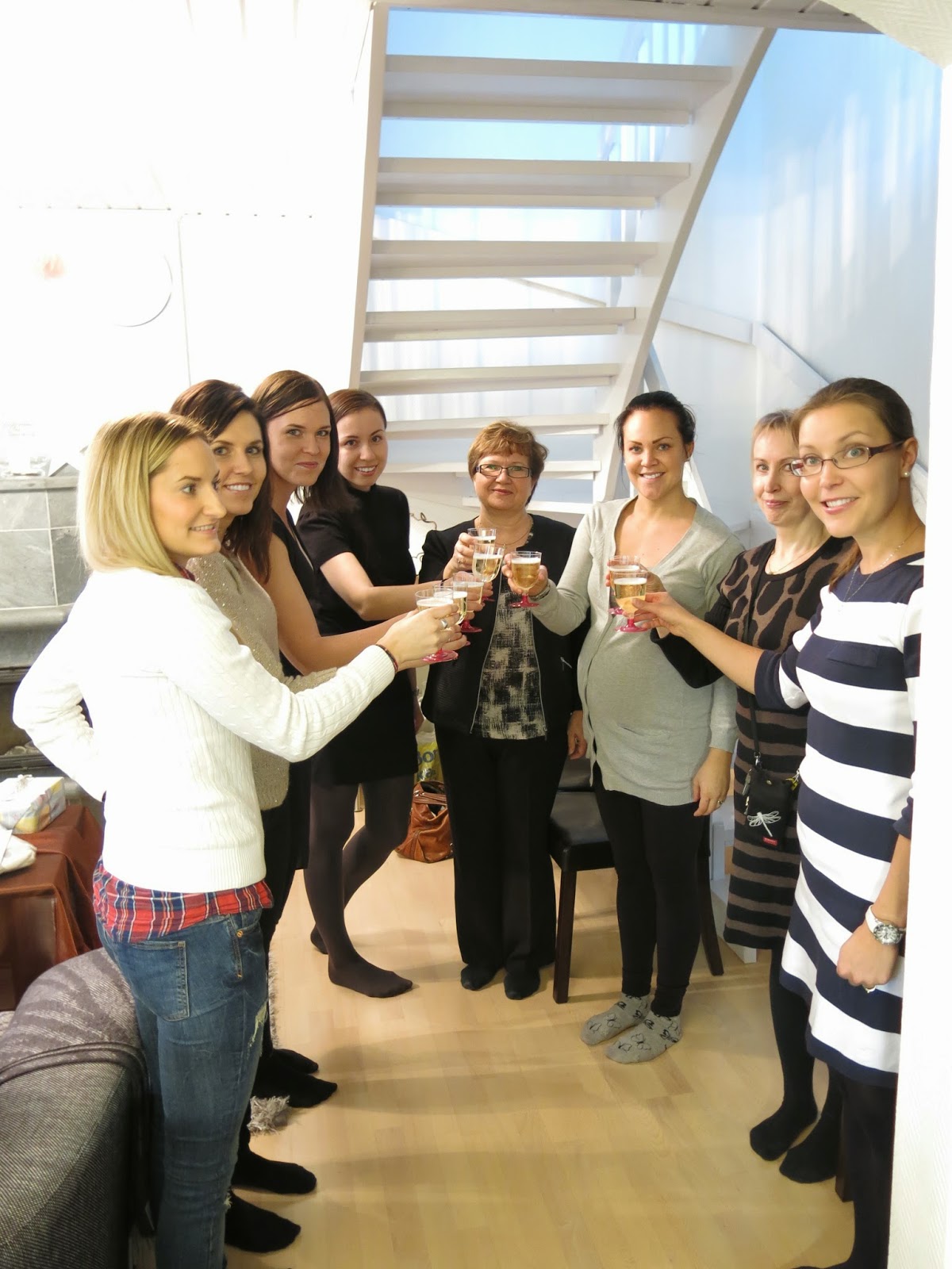 Tänään oli ihana päivä kun vietimme läheisen ystäväni Marian babyshowereita. Pienellä porukalla järjestimme ystävämme kotona yllätyskekkerit. Onneksi saimme hänen miehensä avuksi ja onnistuimmekin täysin yllättämään Marian heidän tullessaan kauppareissulta.