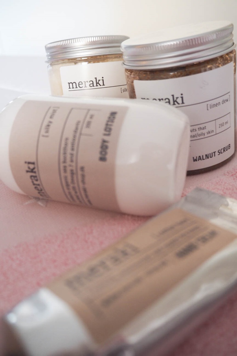 Mainitsin teille jo aiemmin, että White on White liikkeen valikoimiin on tullut myös kauneudenhoitotuotesarja nimeltään Meraki. Sain testattavakseni muutaman ihastuttavan Merakin tuotteen.