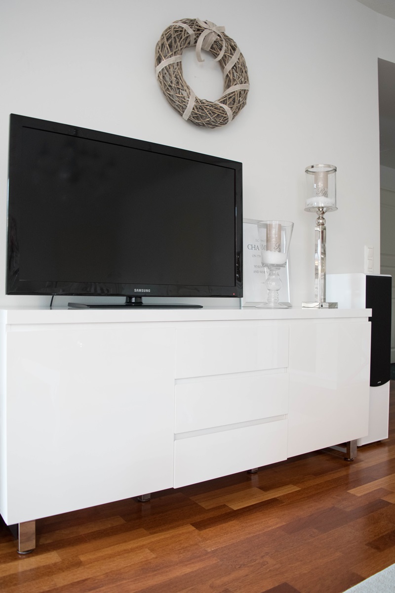 Tässä nyt olisi teille kuvia uudesta tv-tasosta ja kristallivalaisimesta.Tämä Zero senkki soveltuu mielestäni loistavasti telkkarin alle. Kaunis korkeakiiltoinen taso on hankittu Vekenkalusteelta.