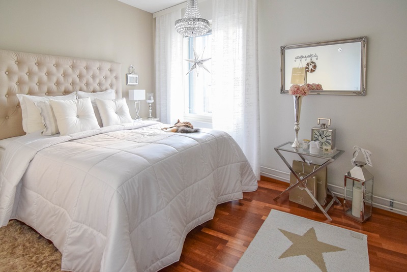 Makuuhuone on hieman muuttunut ja sinne on siirretty Sisustussellofaanista aiemmin hankkimani lasipöytä sekä Prismasta juuri löydetty uusi peili. Pidän paljon enemmän tästä järjestyksestä kuin aiemmasta takkamanttelin kanssa. Tuo Amanda B:n lattiamaljakon olen myös juuri hankkinut ja nostin sen tuohon pöydälle, kun on ehkä hieman orpo yksinään laittaa lattialle. Jos muuten joltain teistä löytyy korkeampi versio tuosta maljakosta niin olisin enemmän kuin valmis ostamaan sellaisen? <3