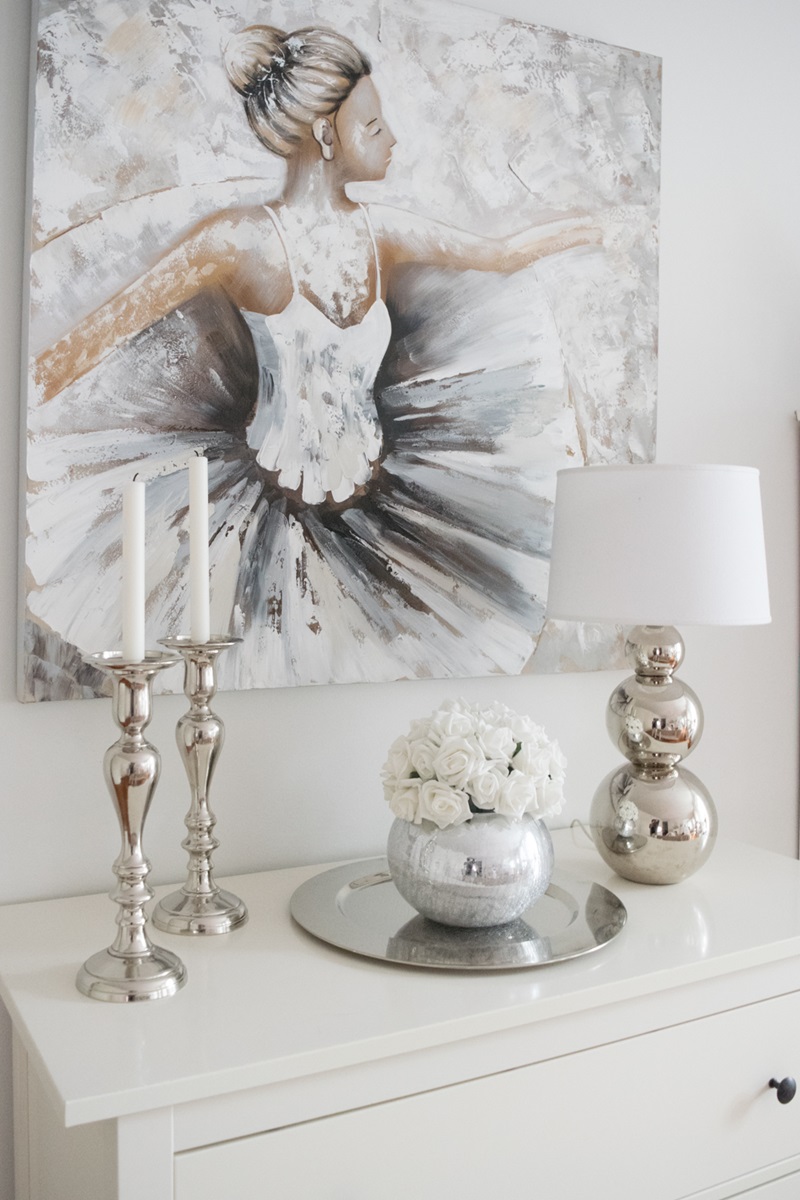 En olekkaan esitellyt teille näitä jo kuvissa vilahtaneita kynttilänjalkoja. Hankin ne samalla reissulla Pentikistä, kun ostin lampunjalat ja varjostimen. Nämä hopeiset kynttilänjalat olivat silloin alennuksessa ja hintaa muistaakseni vain 15 euroa/kpl. Pidän niiden muodosta ja siitä, että niihin voi laittaa pienen pöytäkynttilän tai pitkän kruunukynttilän. Juu, meiltähän kyllä löytyy monia erilaisia jalkoja, mutta niitä on mukava vaihdella fiiliksen mukaan 😉