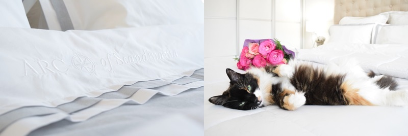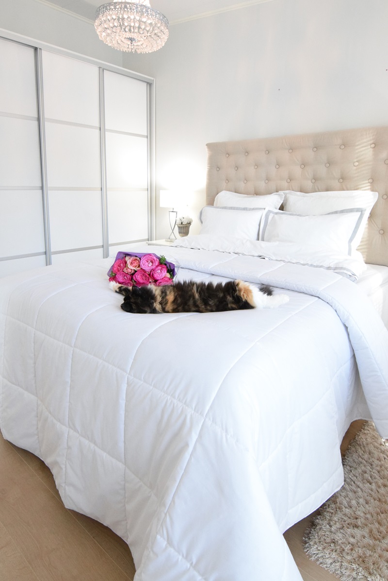 Meille sopii hyvin juurikin kissan takia nuo tiheään kudotut percalelakanat. Niihin, kun ei tartu niin helposti kisulin karvat kiinni. Osku yleensä nukkuu joko minun tyynyn vieressä tai jalkopäässä <3