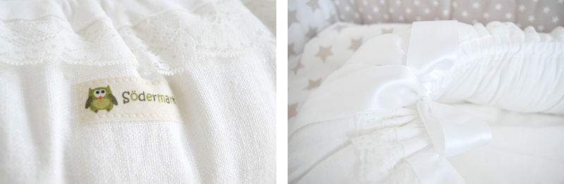 Olin kovasti ihaillut Instagramissa näitä Södermarkdesignin söpöjä unipesiä. Olinkin oikein iloinen saadessani tehdä heidän kanssaan yhteistyötä* tämän suloisuuden merkeissä. Tämä ruotsalainen unipesän valmistaja tekee jokaisen pesän käsityönä. Voit itse valita useasta värivaihtoehdosta ja mallista minkälaisen haluat. Päädyin itse ehkä vähän tylsästi tähän puhtaanvalkoiseen väriin 😉 Söpöyttä lisäämässä on kaunis pitsi, joka kiertää reunoilla. Iso rusetti toimii ns. pesän avaajana. Pohjalla on pois otettava lakana ja suojus, jotka voi pestä koneessa. Suojuksen saat näppärästi otettua pois neppareiden avulla.