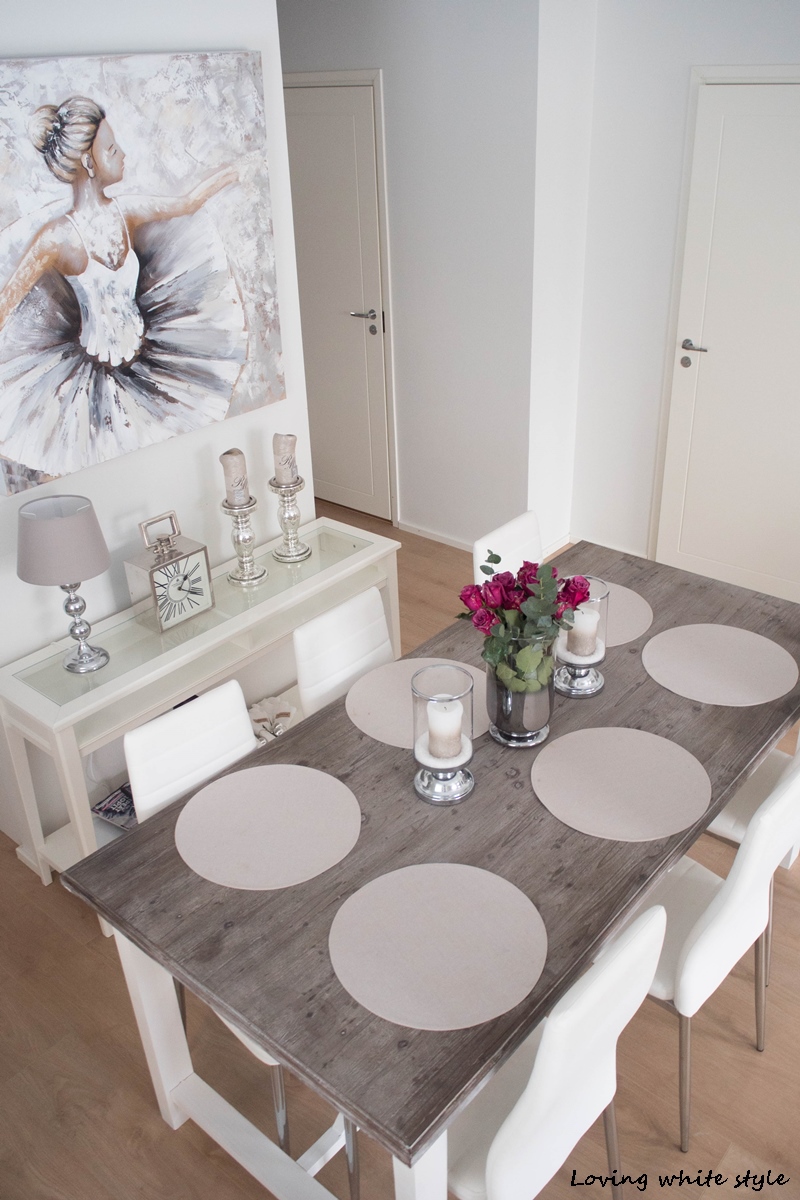 Olen muuten haaveillut tuon sivupöydän ja taulun tilalle isoa vitriinikaappia. Se toisi kaivattua kaappitilaa keittiön puolelle, mutta katsotaan.