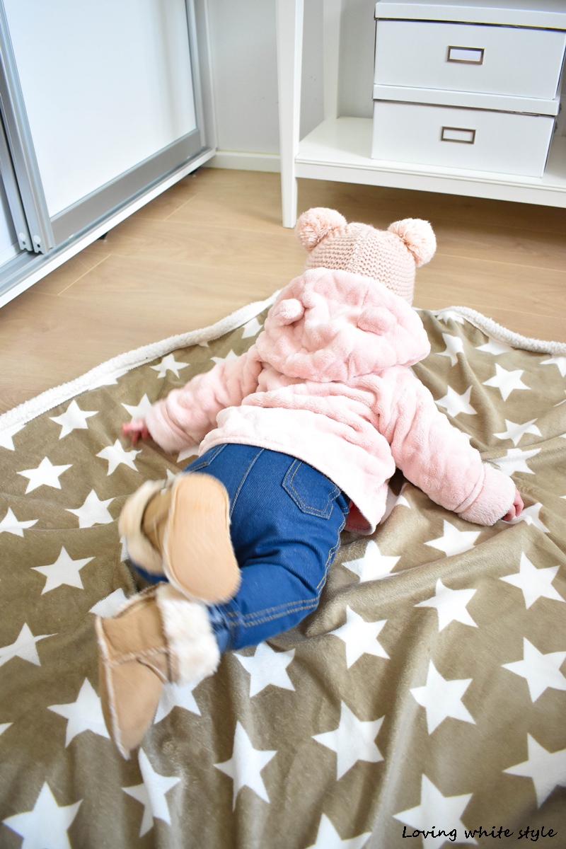 Meidän pienestä neidistä on kasvanut iso tyttö, joka osaa jo kääntyä selältä mahalleen. Laitat hänet selälleen maahan ja muutama sekunti niin hän on jo kääntynyt 🙂 Hän myös koko ajan punkaa itseään istumaan eikä ainakaan sylissä ns. vauva-asennot enään miellytä yhtään. Tuntuu, että hän on kovin varhaisessa vaiheessa jo nämä oppinut. Mahalleen ollessa hänellä jalat vain potkii ilmaa ja kovasti yrittää liikkumaan päästä.