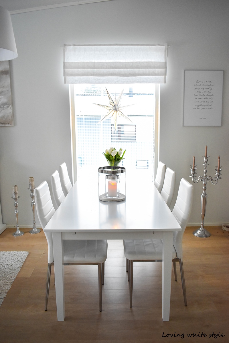 Tässä näittekin samalla ruokapöydän uuden paikan, mitäs pidätte? 🙂
