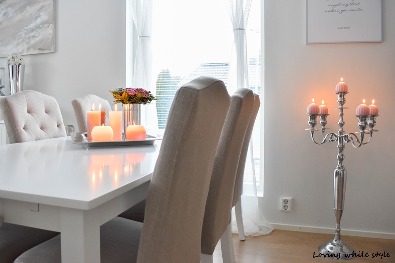 Näissä kynttilöissä yhdistyy juurikin aiemmin mainitsemani kaunis muotoilu että laatu. Lisäksi ne ovat hinta-laatu suhteeltaan hyvin kilpailukykyisiä. Merkkiä myy pääasiassa Sokoksen tavaratalot selä Citymarketit. Erityisesti omaan mieleeni on valitsemieni kynttilöiden ulkonäkö. Valitsin meille hennon roosan, valkoisen ja harmaan värisiä kynttilöitä. Mielestäni tuo harmaa on enemmän beigen sävyinen luonnossa. Pidän erityisesti roosan ja metallin yhdistelmästä varsinkin tässä korkeassa kynttelikössä. Vekkikynttilöissä on oma näyttävyytensä ja kooltaan sopivat moneen käyttötarkoitukseen. Yhdistämällä erilaisia ja eri kokoisia kynttilöitä voi loihtia kauniita asetelmia hetkessä. Niillä saa myös kattaukseen helposti uutta ilmettä.